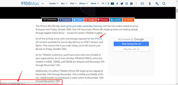选择第一个页面打开,可以看到,虽然网站对iPhone XR添加了链接,但只是网站内部的链接。