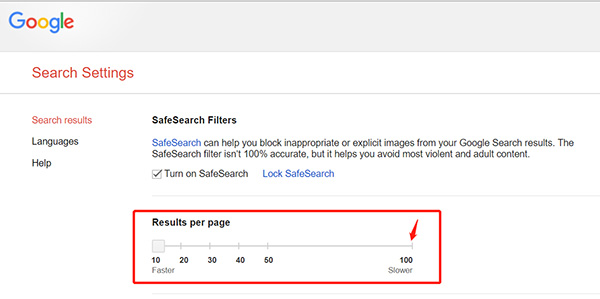 调整Google Search中每页显示的结果数,拉到最大值