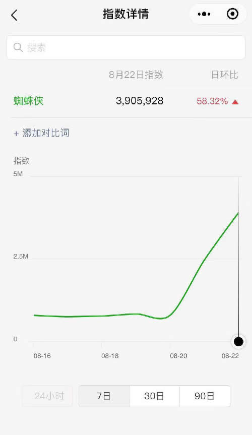 当然我们在布局流量词的时候,应当先去了解一下关键词的搜索量,这是通过百度指数查到的当前关于:蜘蛛侠英雄远征这个词的百度搜索数据,可以分析最近几天的搜索情况,从而去布局相关长尾词的流量。