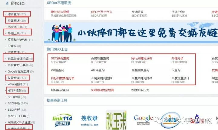 一般工具,用的多的是综合查询,排名查询,友情链接检测,关键词挖掘,这里推荐SEOWHY工具,http://tool.seowhy.com/ 也可以看我SEO工具文章推荐。