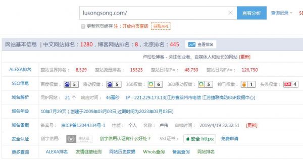 最近,使用站长工具时,意外发现站长工具综合查询数据结果内新增了头条权重这一参考标准,并且每个网站的头条权重也都给出了相应的排名,目前卢松松博客的头条权重是4,看来今日头条这是要正式在搜索引擎崛起了!