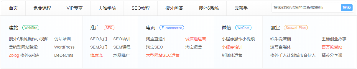 网站导航主题是引导用户访问指定的网站菜单、栏目、内容等。一个合理的网站导航也是权重互传的重要途径。导航结构越清晰,越有利于用户在短时间内找到自己喜欢的内容。