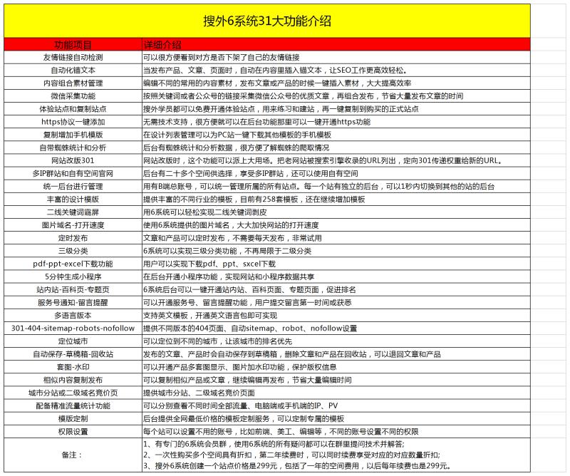 如果您熟悉DeDeCMS、YIQICMS、Wordpress、帝国CMS等任何一款开源程序,那么您就可以很方便上手搜外6系统。本系统是一套SaaS化的群站系统,简单理解为在线版的建站程序,可以实现主流开源程序的几乎所有功能。突出亮点是把对SEO的友好性做到了极致,如:所有页面均可自定义TDK、多维度的产品分类、内容素材组合发布、自动微信采集定时发布、站内站功能、百科页功能、栏目页banner详情功能、自动化站内锚文本功能、自动检测友情链接功能。