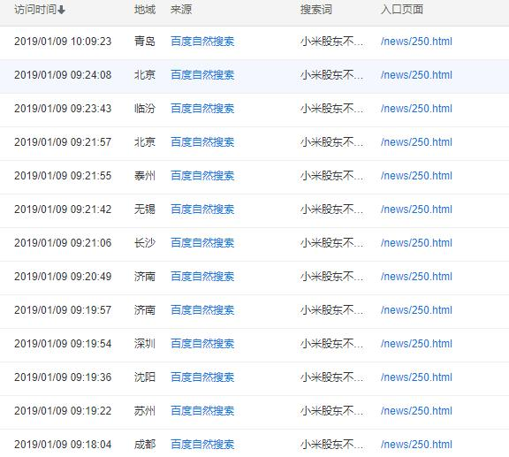 上图是笔者网站统计工具里的搜索词来源截图,这就是“小时收录”的效果,可以看到该网页被收录后,立刻吸引了大量网友点击浏览。这是因为百度搜索热点点击后,就是代表用户在百度里搜索了这个词。比如说现在搜索热点里有条新闻是“小米股东不卖股”,那么点击进入后就代表你在百度里搜索了一次“小米股东不卖股”,如果你的标题契合度高而且没有太多大网站转载,就可以排到前面给网站引入一些流量,笔者试过很多次,部分新闻开始就能排到首页,但随着时间推移,越来越多大网站的页面被收录后,笔者的页面就被挤下去了,所以对小网站来说,给力的就是开始那一小段时间。不过即使这样相信对挂了广告的网站能带来一些小帮助吧。而且出现在百度搜索热点里的那些关键词都能在百度指数里搜到,这就意味着如果有几条新闻后期能保持在百度前50名,可以增加网站在站长工具里的关键词库。