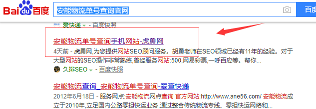 然后,在百度搜索关键词:安能物流单号查询官网,在首页排名的很好。