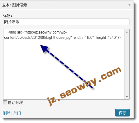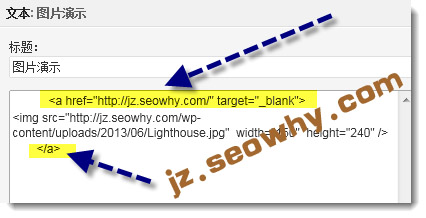 第三个步骤:在文本小工具插入html图片代码