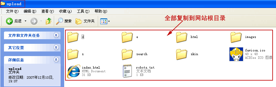 下载的文件里doc目录是产品更新说明、安装说明、常见问题说明等相关文档,upload目录是帝国CMS系统的程序目录。