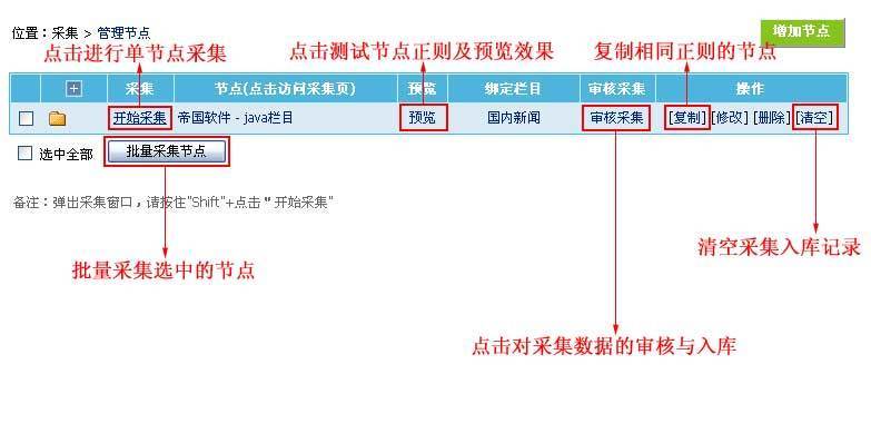 | [清空]节点 | 清空采集入库记录,使此节点数据可重复采集。 |