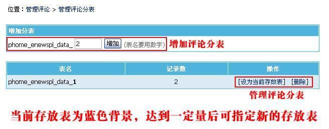 | [管理评论分表]按钮 | 评论支持分表,使评论容量更大,速度更快。对分表进行管理。 |