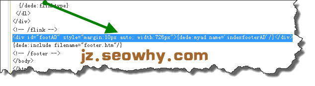 <div id=”footAD” style=”margin:10px auto; width:726px”>{dede:myad name=’indexfooterAD’/}</div>