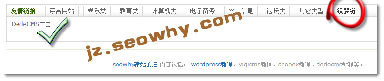 默认情况下,在dedecms首页的友情链接版块会有一个织梦链,在织梦链下方会显示一个dedecms广告的友情链接,这在