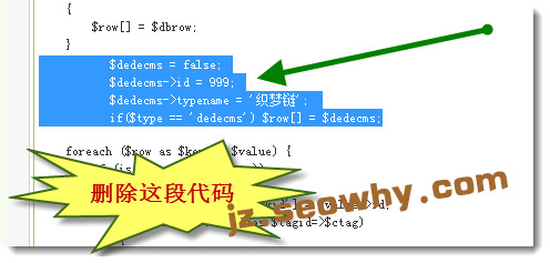 if($type == ‘dedecms’) $row[] = $dedecms;