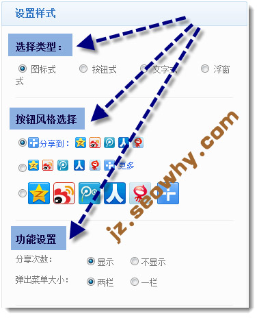 这时候就会进入百度分享代码的获取界面,左边是百度分享按钮的设置样式: