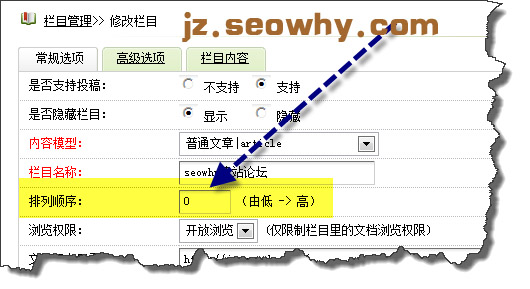 其次:进入增加顶级栏目的界面,按照下面的格式来填写;