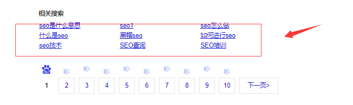 在百度搜索结果页面底部通常有9个相关词,其他搜索引擎同样也都有相关搜索,只是显示个数稍微有些不同,例如,我们搜索什么是SEO,新手如何学SEO等词组,目的就是为了方便用户对该词的其他信息进行拓展了解。