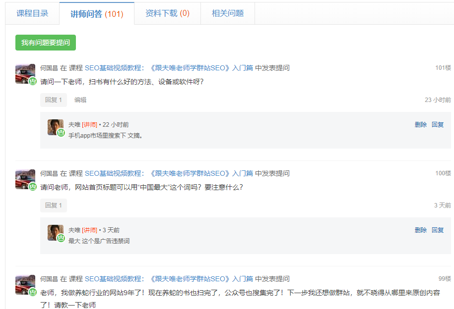 优质的视频课程加上96%的问题解答,让你在清晰的学习理解SEO时,进行答疑解惑,这样的一个模式,对于学习SEO的朋友来说是一个最理想的选择。