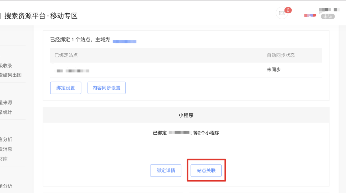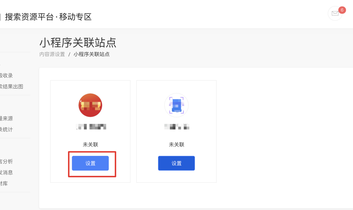 要想获得以上多种收益,首先需要小程序资源被搜索收录。因此您需要在搜索资源平台设置小程序与站点的关联关系,以方便我们获得站点与小程序的对应关系适配,帮助小程序资源被搜索更快收录。