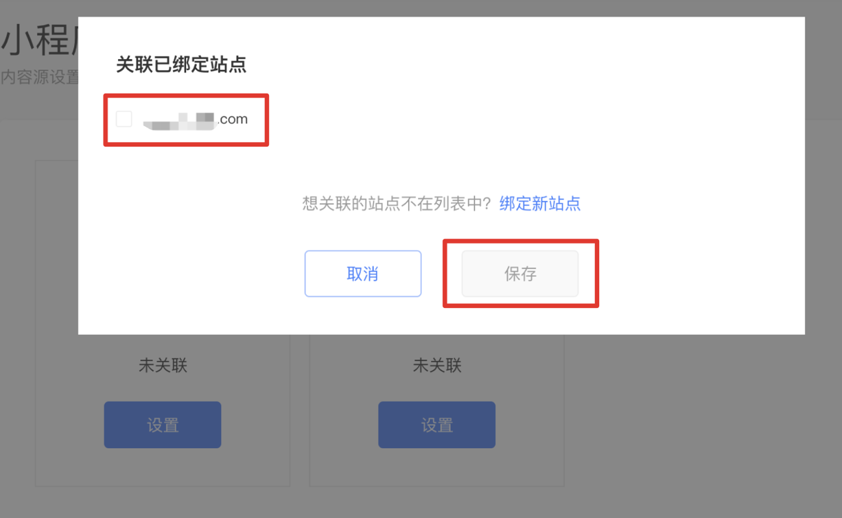3.在内容源设置中点击【站点关联】,可设置小程序与站点之间的关联关系:
