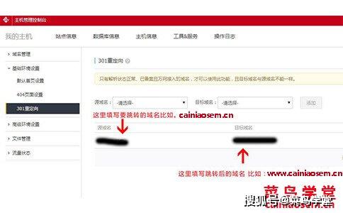网站301重定向是在网站基础SEO优化阶段常用的优化方法,目的就是让网站URL链接统一规范化,实现网站权重的集中。但不同服务器主机,不同操作系统的网站301重定向设置方法都不一样,这就让一些新手SEO朋友纠结了。菜鸟菌曾经也是受过这份苦,不胜其烦。 为帮助新手朋友少走弯路,菜鸟菌特整理了常见网站301重定向设置的各种方法教程,主要有以下几种。 一、空间后台自带301设置 目前很多空间商的虚拟主机后台都是带有301重定向这个功能的,可以直接在后台设置,免去很好麻烦。比如阿里云和西部数码的虚拟主机。