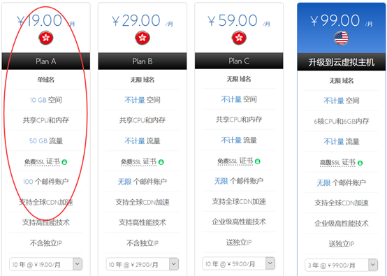 如果我们是新手初次建站可以选择一年套餐,基础PLANA即可,如果没有域名可以一并购买。服务器采用常见的Linux系统(建议选择此系统),然后在后台可以一键快速安装博客程序,比如WordPress。