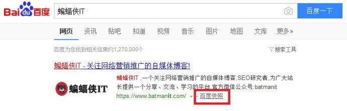 很简单,比如进入百度搜索框,搜索“蝙蝠侠IT”这个词,你会看到如下这样的结果: