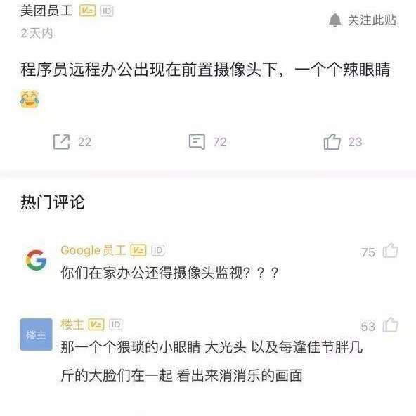 2月3日远程办公第一天,有企业要求全天开放摄像头,并且还需要“早上打卡,发工作计划,晚上发总结,每天写日报”。阿里巴巴也提出了要求:“每天两次打卡,增加每天晨会和日报,工作时间要求 10 分钟内必须响应钉钉,其他时间必须 30 分钟响应。”