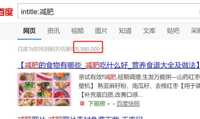 这也就说明网页标题中包含减肥关键词的网页有500多万个。