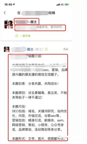 微信圈子名字很重要,比如作者的营销圈,包含SEO、营销关键字。