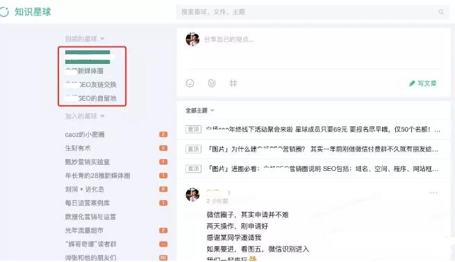 再后面【小密圈】更名【知识星球】,进一步扩大。当然主要影响还是在互联网技术圈很出名。定位:链接一千位铁杆粉丝。作者也在2019年4月正式创建了营销圈,目前加入为数350+