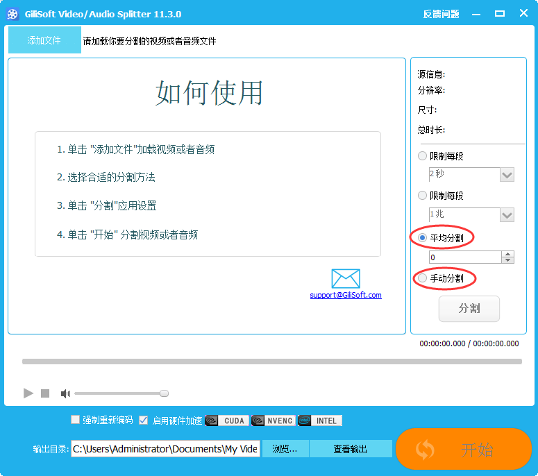 很简单,我们点击分割,接着就会弹出来操作方法,只需要添加视频文件,然后平均分割或者手动分割,然后点击分割即可。