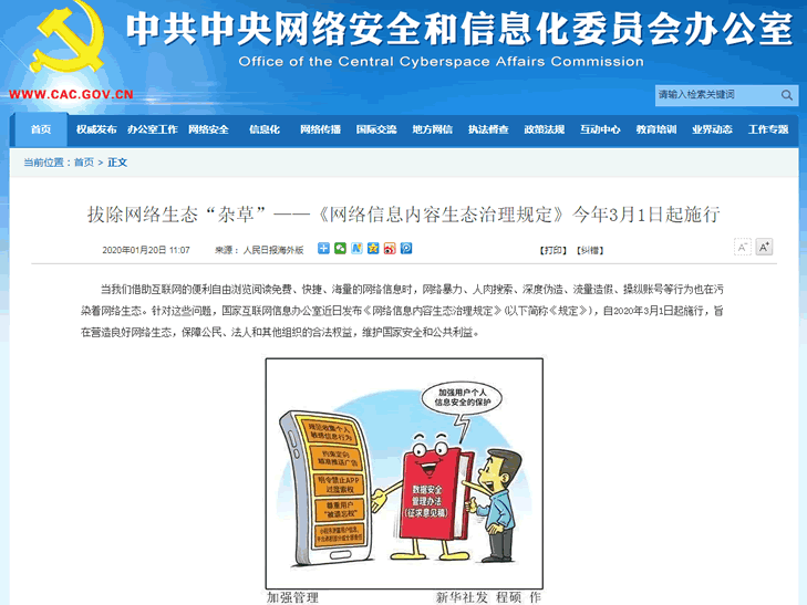 近日,国家互联网信息办公室发布了《网络信息内容生态治理规定》自2020年3月1日起施行。这个法案最大的亮点在于,对一些常见的网络活动进行明确立法,这个法规非常重要,严重关系互联网创业者的利益。