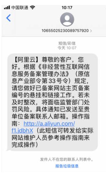 想必最近各位站长朋友都收到了阿里云的这个短信《关于网站主页下方标明备案编号的通知》通知,我也如此,大意是要求所有的网站多要做好备案号的悬挂和链接工作。