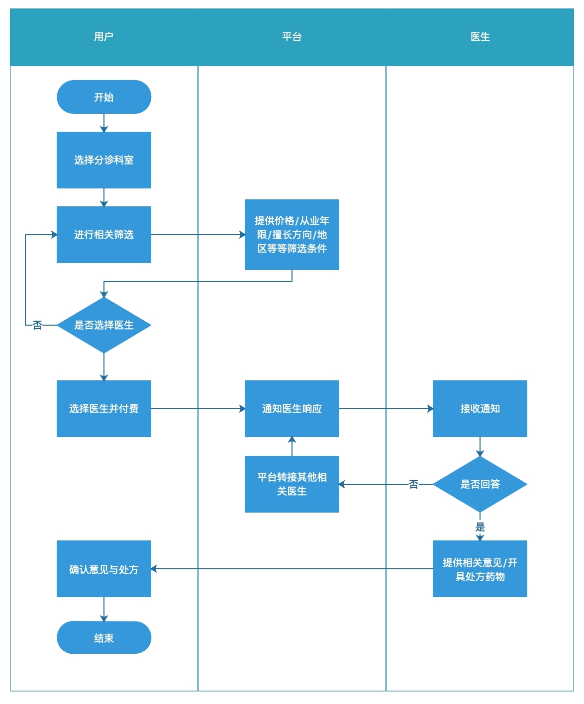 最开始的流程设想肯定是不够全面,但对比用户传统的流程,我们可以发现初步的流程设想已经可以解决用户的部分痛点,如线下转线上,减少部分不必要的时间成本。之后我们再依据相关的功能范围,来完善我们的产品预期,比如是否需要提供用户更多筛选选择?是否考虑医生的在线时间?医生是否可以/愿意回答?线上是否可以直接指导开具处方药物?
