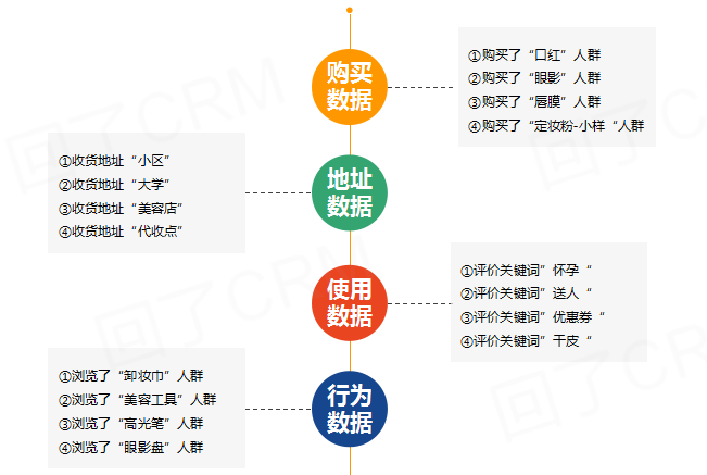 如上图,这个画像是比较简单的,仅从这种单一的人群画像想要去判定用户的偏好,还比较粗糙的,例如购买了口红的人群,她有口红颜色收藏癖吗?是更注重口红的滋润度还是颜色,还是产品的价格?这些问题,仅从一个“购买了口红的人群”这样单一的人群画像,我们无法得知。