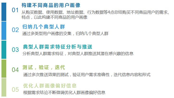 前期通过多组人群画像的交集,我们得出一个较为清晰的人群画像,也根据画像特点,反推出了这组用户的需求,并对用户推送了相关信息,下一步就是需要对各组人群效果做统计与分析,验证前期反推出的需求是否正确,根据数据不断优化人群画像。