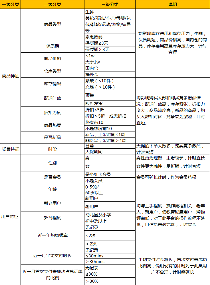 根据1.2的竞品分析可知,大部分平台的「支付时间」影响因素是场景侧和商品侧。