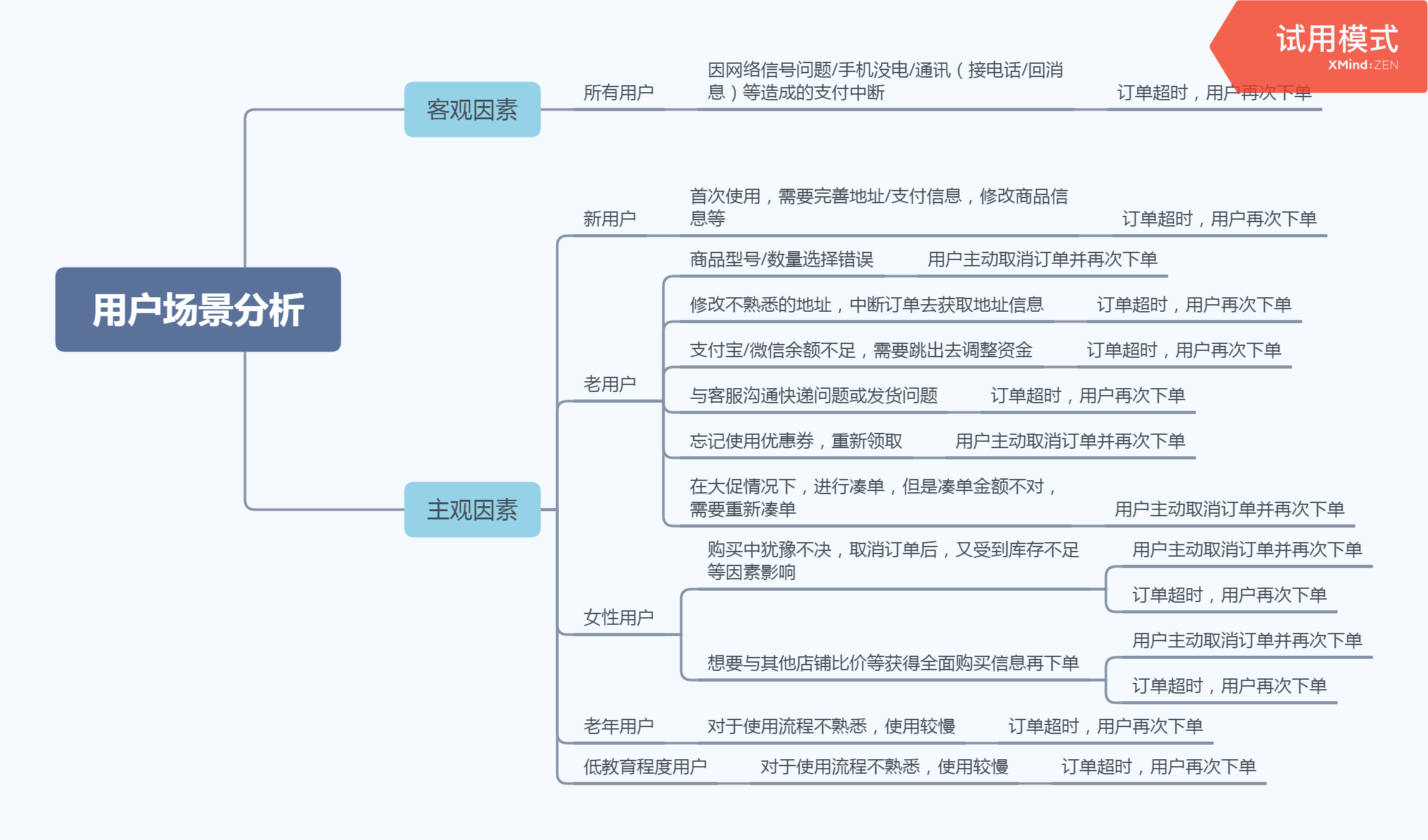 此小节,采用“用户-场景”方法,分析小红书的用户侧的「支付时间」影响因素,以及明确支付中断后二次支付的具体原因。