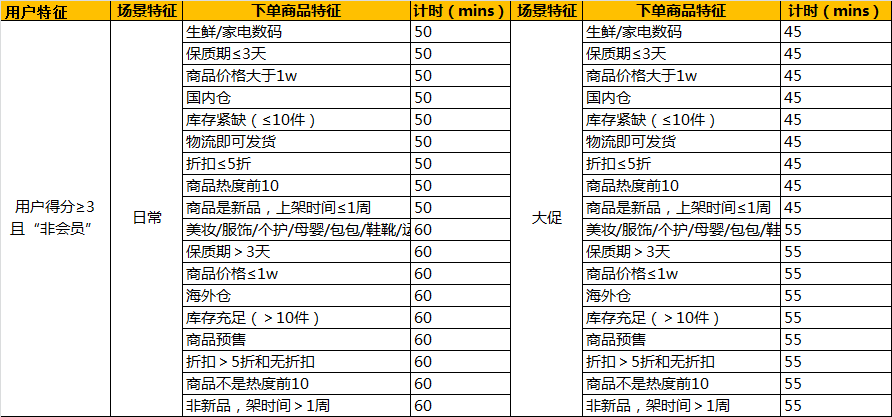 五大平台均是从商品特征和场景特征进行计时策略的设计。