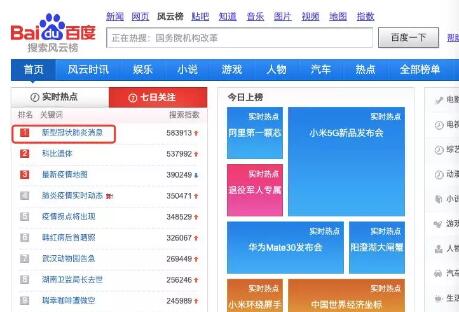 (百度七日搜索关注最多的肺炎消息)