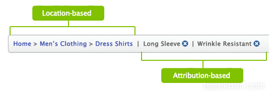 基于属性的面包屑导航会将特定页面的类别列出来。比如电商网站就会列出来常用商品分类。这种面包屑导航可以帮助用户了解产品之间的联系,同时提供了不同的访问方式。