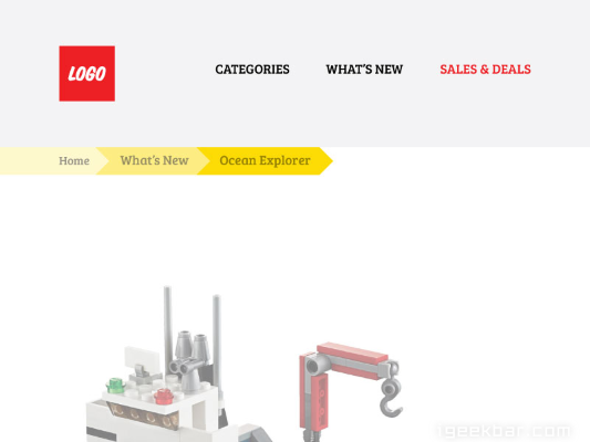 不要使用花哨的字体和亮色,这样会违背使用面包屑导航的初衷。设计面包屑导航的原则是它不能是页面加载后最吸引用户的内容。下面这个例子中的面包屑导航虽然效果不差,但是太吸引用户的目光,可能会分散用户的注意力,使其更加关注面包屑导航而不是顶级导航和页面的主要内容。