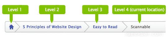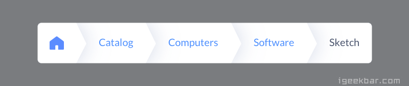 在设计的时候要谨慎考虑导航菜单的大小和padding属性。在每一个项目之间必须有充足的间隔,否则用户理解起来会有问题。同时你希望面包屑导航不会抢了其他主要部分的风头,因此你需要让它看起来比顶级导航要低等一些。