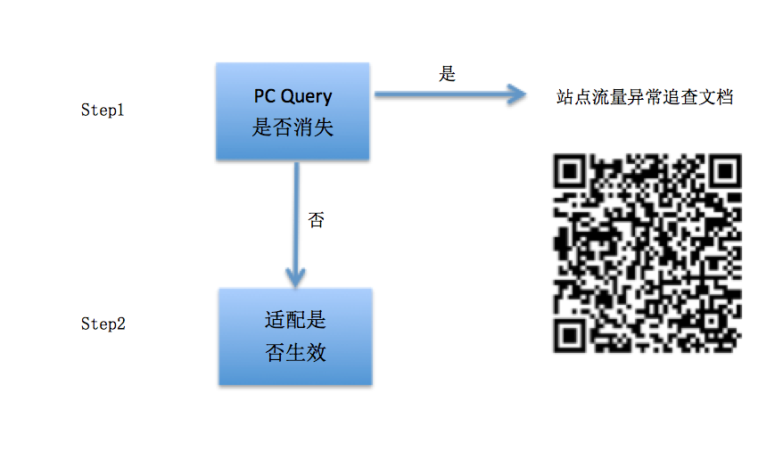 跳转适配由PC链接和移动链接作为对应关系,移动展现会有继承PC展现因素,所以先要判断一下同Query在PC端排名是否消失,如果PC端消失必定会对移动端有连带影响,这部分可以先看PC 流量异常追查文档,根据这个来进行排查。