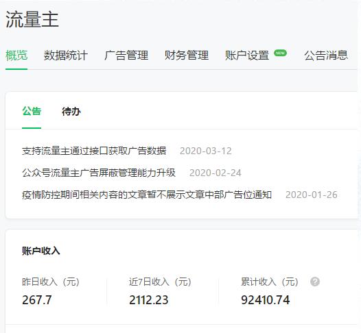 公众号日收益就1-2千左右了(流量主,带货,广告)