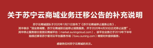 继上次美团云宣布下线之后,发现苏宁云也要关门下线了,2020年4月30日正式停止运营。