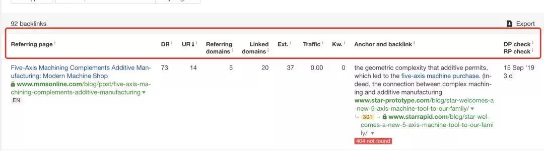 当我们将竞争对手的网站放到aherfs的时候,我们可以因为竞争对手页面删除或做了301的情况,导致以前的外链出现了跳转或者打开页面不存在的情况,而这个时候便是我们获取该外链的机会。