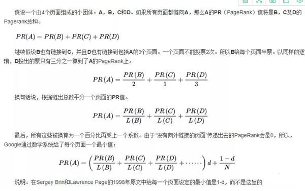 算法用到了很多公式,大家看不懂没关系,现在也用不到了。用通俗的话解释,两个专利的算法都类似论文的引用数量,哪个论文被其他论文引用的次数多,就认定哪个论文质量更好。比如,某教授T 发布了一篇论文,这篇论文被很多学生A、S的论文引用,就说明T的论文质量更好。