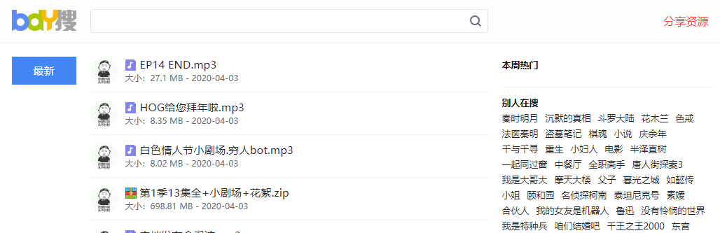 网盘搜索只抓取了资源的链接索引更新网友的主动分享链接,本站并不保存资源。