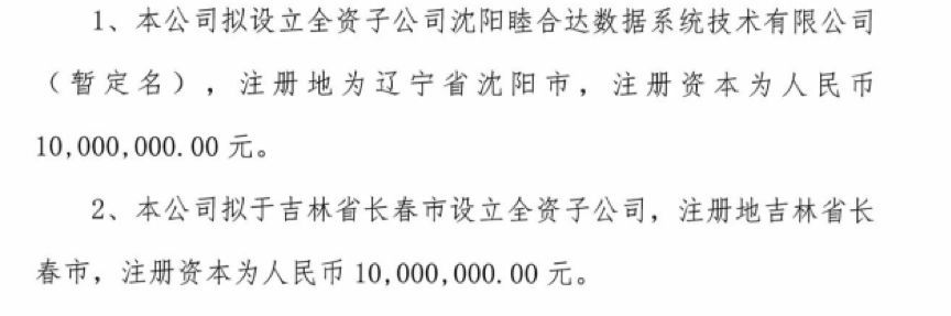 配合智慧城市,睦合达分别于沈阳、长春成立子公司