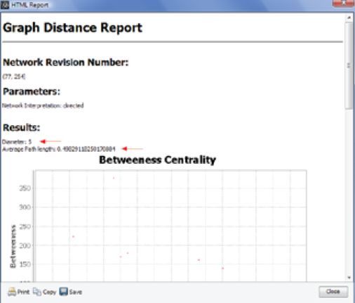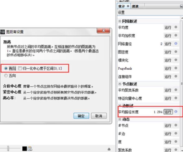 【第七步】进行一些统计操作(节点度、模块度、社区划分、PageRank等。这里以计算网络的平均路径长度为例,平均路径长度反应出网络中各节点的紧密程度,这些统计后所得的参数都可作为上面所说的排序处理所要用的参数。)
